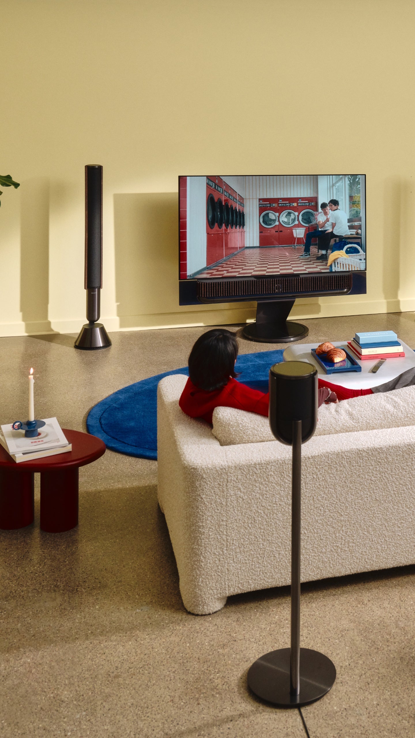 Precision from the background: The Beolab 8 speakers fill the space behind you with a level of detail that makes you forget you're sitting in your living room. You're right in the middle of the action.