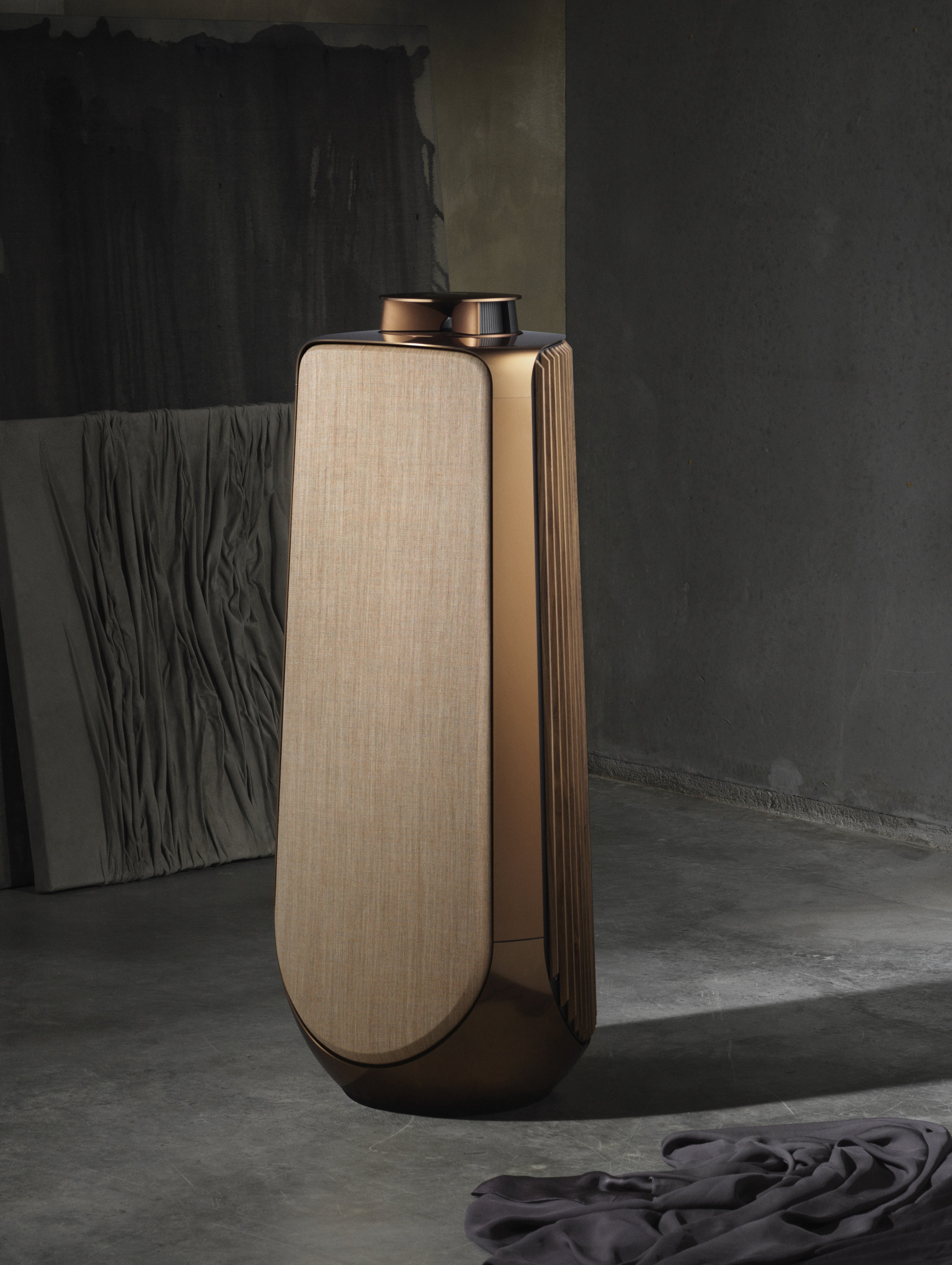 The new BeoLab 50 delivers ultimate sound performance thanks to its innovative sound control technology and unique design. The speaker's distinctive appearance reflects the technologies employed while elegantly blending into the interior design.