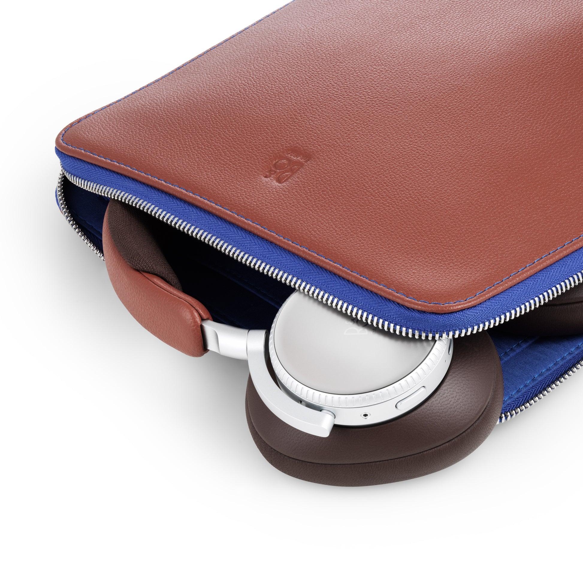 The H100 offers a variety of features that enrich the daily experience. Smooth multipoint switching, automatic call routing, customizable controls and fast charging are some of the innovations that make your life effortless. Thanks to the multiple layers of cushioning foam delicately wrapped in knitted textile, the inner headband offers all-day breathability and comfort. The lambskin leather is gentle on the skin, offering an experience that feels as good as it sounds. The new scratch-resistant tempered glass touch surface is silky smooth, both in feel and function. Together with precise haptic dials and tactile buttons, you have all the essential controls exactly where you need them – right and left. With a luxurious combination of durable cowhide leather and soft inner lining, the Beoplay H100 case is a stylish companion designed to safely store and protect your headphones.