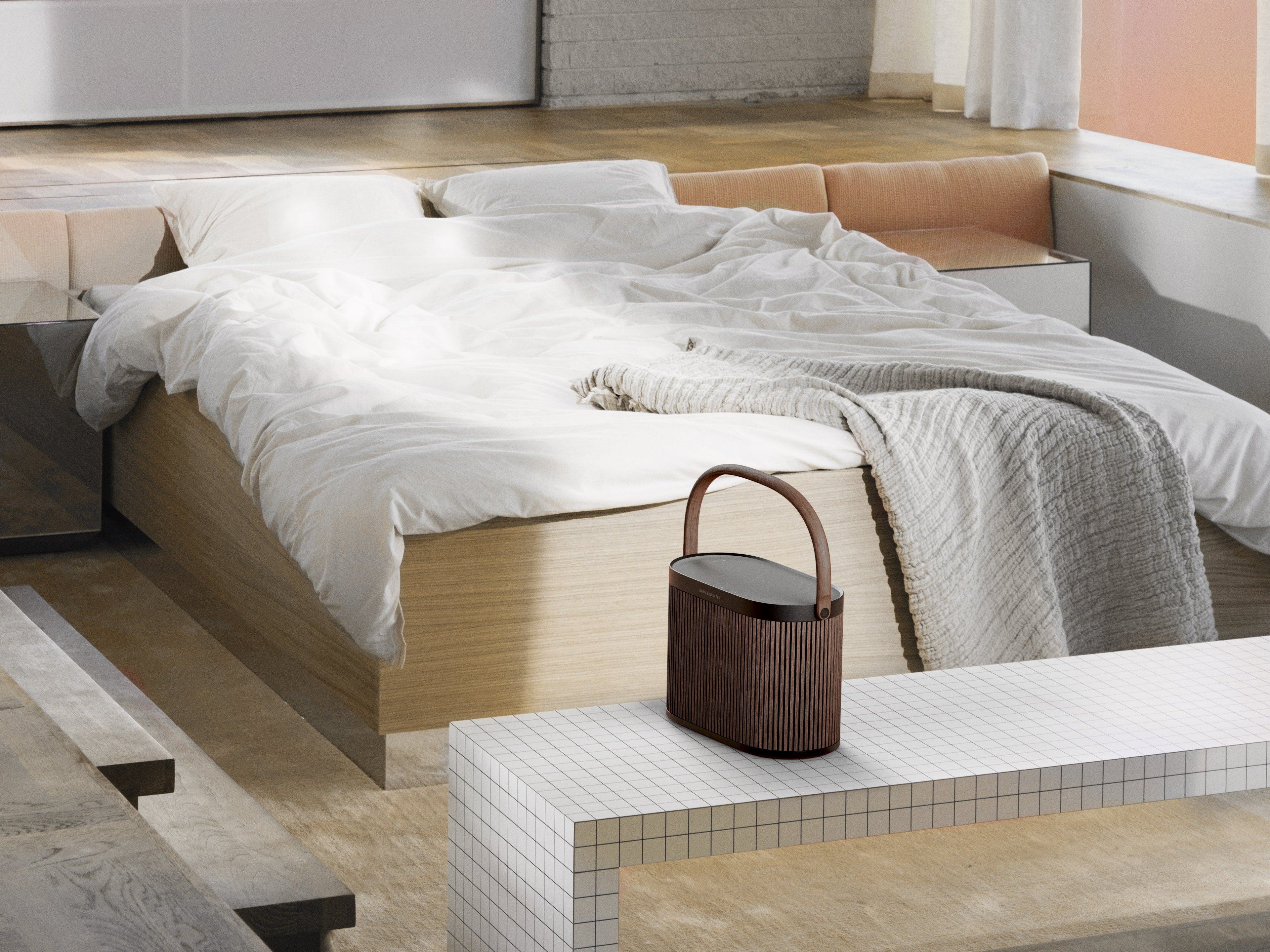 The aesthetic of the Beosound A5 was inspired by contrasts: light and dark, rough and fine, home and away. Nordic Weave combines feather-light design and powerful sound. Throughout the ramified history of Scandinavian design, the sheer simplicity of the woven fiber has emerged. She borrows her inspiration from classic living room furniture on the one hand and from raffia fabrics that evoke adventures on the other. At the other end of the spectrum is Dark Oak . The dark wood looks as if it was made for a dining room or a mountain cabin. Both versions share a compact housing: Dark Oak is framed in anthracite black, Nordic Weave has the natural shimmer of aluminum. The frame ensures clear visibility and makes changing the covers flexible. So the Beosound A5 finds its place everywhere. Its aesthetic reflects different contrasts and takes them into a flexible lifestyle.
